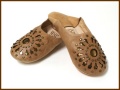染色をしていないナチュラルな革とスタッズを組み合わせたデザインのバブーシュです